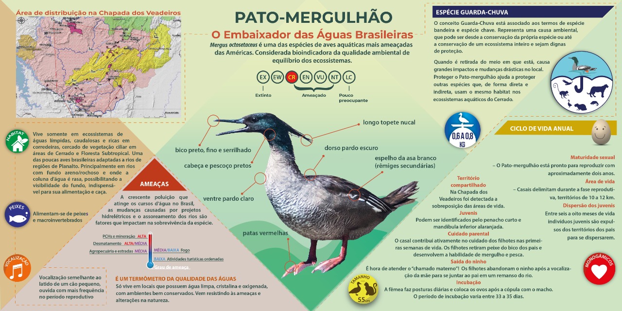 Implement actions of research and monitoring, public awareness, dissemination and training, per the National Action Plan (NAP) for the conservation of the Brazilian Merganser in the Veadeiros- Pouso Alto-Kalungas Corridor, Brazil.